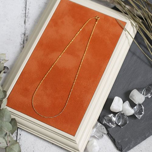 こちらのお店のネックレスを見ていた時、丁度セールになっていて細い18金ネックレスが欲しいかったのと、スライドチェーンで便利そうなので購入しました。小さいトップにピッタリでとても綺麗で長さ調節も出来てとても満足です。