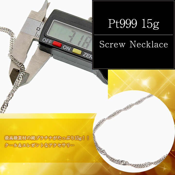 | 製品名: | 純プラチナ ネックレス スクリュー チェーン 50cm Pt999 刻印 2140-NP14 |