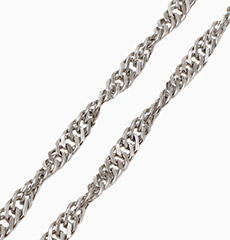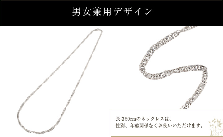 最高級素材である、純プラチナ(Pt999)を惜しみなくたっぷり使用した、高貴に気品あふれるネックレスチェーン。華やか過ぎない、洗練されたスクリューデザインは、落ち着いた大人の女性にぴったりです。普段の装いをぐっとエレガントに引き立ててくれます。男女兼用の50cmのゆとりのあるサイズで、着け心地も抜群!!プレート部分には、「Pt999(刻印)」が有り、素材と品質の良さも証明されています。ダブルキヘイにロールをかけひねりを加えたデザインはたくさんの輝く面を作り胸元を豪華に演出。