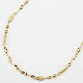 最高級素材である、24金を惜しみなく使用した、高級感あふれるデザインネックレス。純金のパーツを組上げたセミハンドメイドで、胸元の華やかさも倍増します。 最高級素材・24金のみでお作りしたネックレスは、どんなスタイルにも合わせやすく、普段の装いをぐっとエレガントに引き立ててくれます。華やかさと、落ち着いた飽きのこないデザインを高い次元で可能にした魅力あるデザイン。45cmのゆとりのあるサイズで、なめらかに肌に沿うネックレスは、着け心地も抜群です。