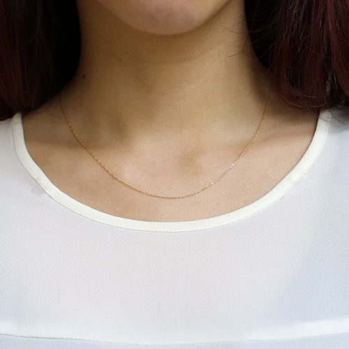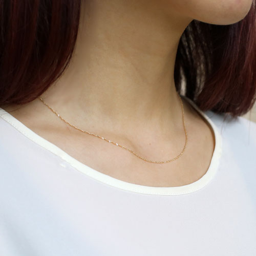 こちらのお店のネックレスを見ていた時、丁度セールになっていて細い18金ネックレスが欲しいかったのと、スライドチェーンで便利そうなので購入しました。小さいトップにピッタリでとても綺麗で長さ調節も出来てとても満足です。