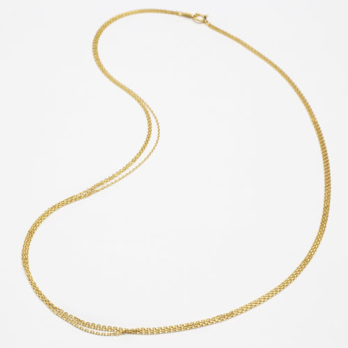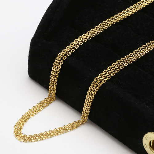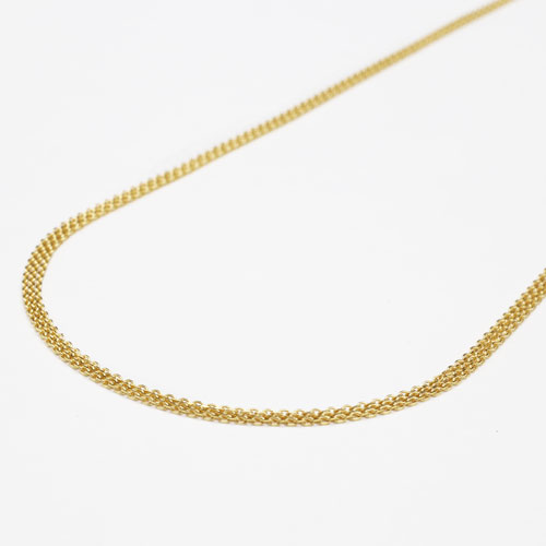 人気のアズキチェーンにカットを施し、よりキラキラ感を演出したデザインを同寸の3連にした贅沢なネックレス。