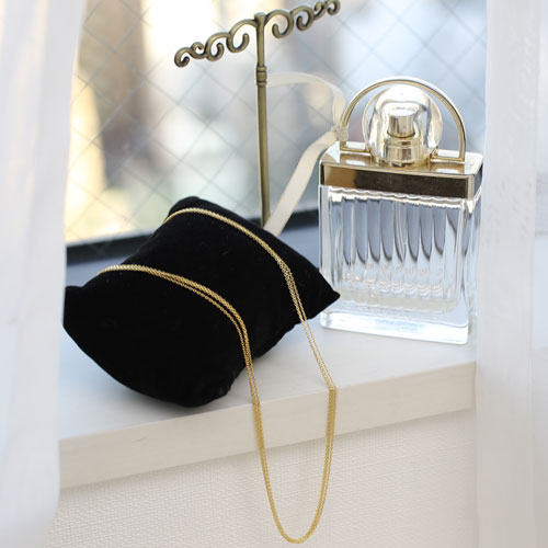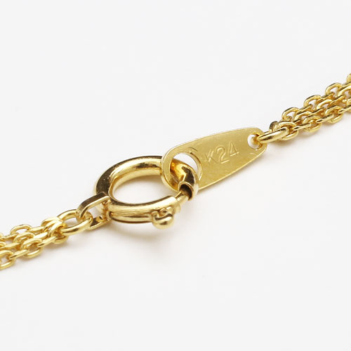 45cmのゆったりゆとりのあるサイズで、なめらかに肌に沿うネックレスは、着け心地も抜群!! また、プレート部分には、「K24(刻印)」が有り、素材と品質の良さも証明されています。