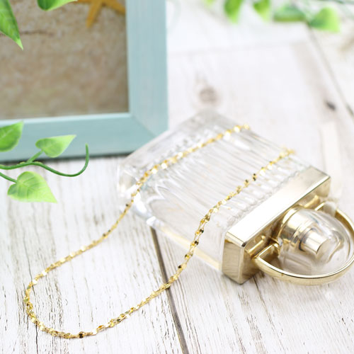 こちらのお店のネックレスを見ていた時、丁度セールになっていて細い18金ネックレスが欲しいかったのと、スライドチェーンで便利そうなので購入しました。小さいトップにピッタリでとても綺麗で長さ調節も出来てとても満足です。