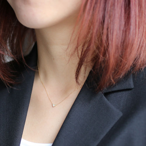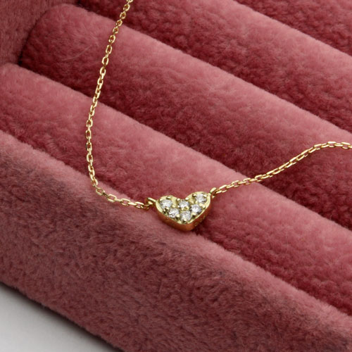 18金の小さくなハートにダイヤモンドが6個セットされたキュートなペンダントネックレス。18金イエローゴールドでお作りした可愛いハート型のペンダントは、カジュアルスタイルにもパーティースタイルにも合わせやすく、人気のモチーフデザインです。