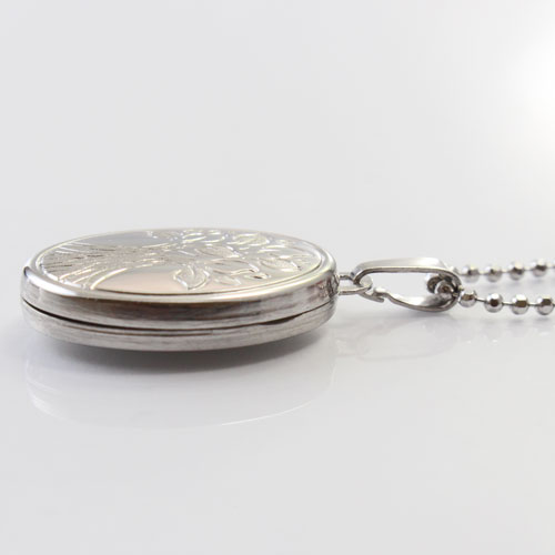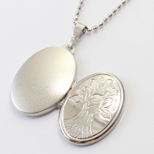 オーバルの定番ロケットペンダント。Life of the tree (木の生命)デザイン、裏は無地の艶消し仕上げ。その日の気分で両面を使い分けていただけます。合わせる洋服によってキュートな感じにもシックでクラシカルな雰囲気にもなります。彫刻柄も本当に細かくて高級感があります。大切な人、大好きなペットの写真をこっそり入れて、お洒落にロケットペンダントを楽しんでください。