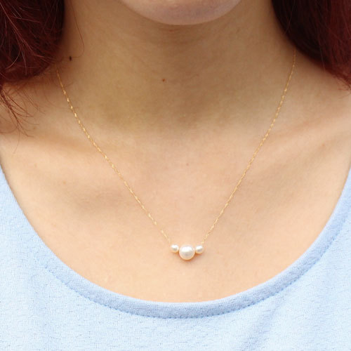 7mm珠の淡水真珠は、見た目にも大きく、着ければその存在感はかなりのもの!その両サイドに4mm珠を配したトリプル(3個)ペンダント。まるで、ミッキーマウスをモチーフにしたようなシルエットはかわいいと評判。ディズニー好きの方へのプレゼントにも最適です。キュートなプチペンダントが胸元をより魅力的に演出してくれます。パールは、この価格では考えられないほどの品質の良い物を揃えました。(天然のパールですので、多少のキズやエクボが見られる場合もあります。)また、チェーンには金属アレルギーを起こしにくいと言われている高級素材、純度75%の18金を使用しています。全ての素材にこだわった、シンプルなパールのペンダントネックレスは、年齢やファッションに左右される事がないベーシックアイテム。