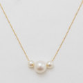 18金イエローゴールド トリプル 淡水パール ペンダント スクリューチェーン ネックレス 2328-PG15