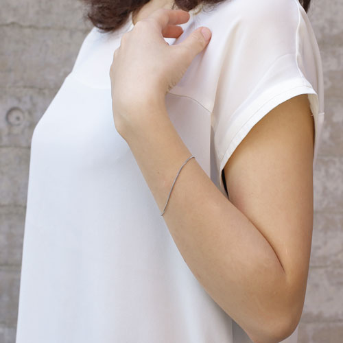 高級素材・プラチナ850を贅沢に使用した、シンプルなのに存在感抜群の2面カットキヘイブレスレット。さり気ないおしゃれを手首に演出してくれます。リストウォッチやダイヤモンドのブレスレットなどとのコーディネートをお楽しみいただけます。