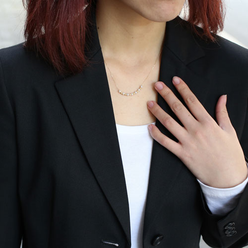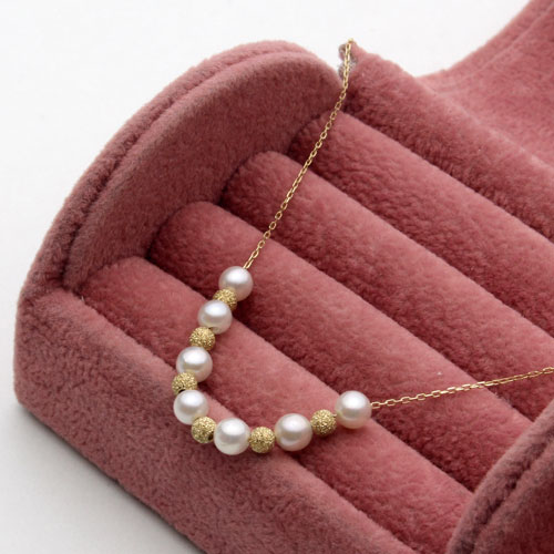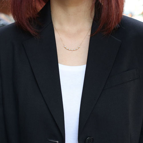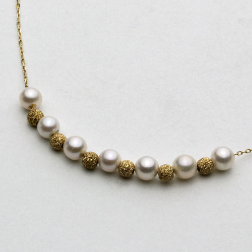 | 素材 | ●トップ/あこや真珠7個(3.7mm幅)、18金ミラクルカットボール6個(2.5mm幅) ●チェーン/18金イエローゴールド |