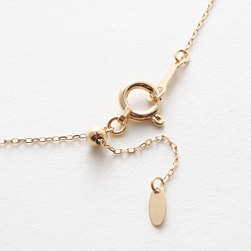 こちらのお店のネックレスを見ていた時、丁度セールになっていて細い18金ネックレスが欲しいかったのと、スライドチェーンで便利そうなので購入しました。小さいトップにピッタリでとても綺麗で長さ調節も出来てとても満足です。