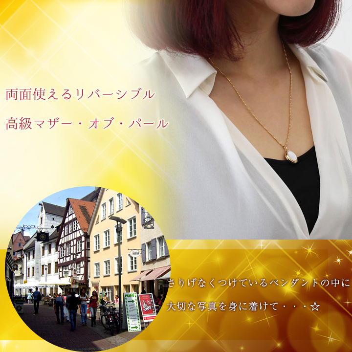 最高に素敵な写真を・・・ペンダントを開くと両側に写真を2枚入れることができ、リバーシブルタイプなので、その日の気分で使い分け☆ |