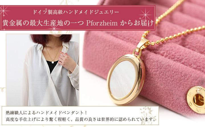 シンプルでペンダントとしても魅力のマザーオブパール(白蝶貝)が付いた小さなオーバル・ロケットペンダント。ドイツ製ならではの作りの良さとハイセンス、他ではなかなか見つかりません。愛する人を偲び、いつまでも身に着けて、未来へ生きる力と勇気を与えてもらえるでしょう。仕上げも本当に良くて高級感がありますよ。また、裏面が地金のシンプルな仕上げになっているので、その日の気分で両面使えるのが魅力です。大切な人、大好きな家族・ペットの写真をこっそり入れて、お洒落にロケットペンダントを楽しんで下さい。