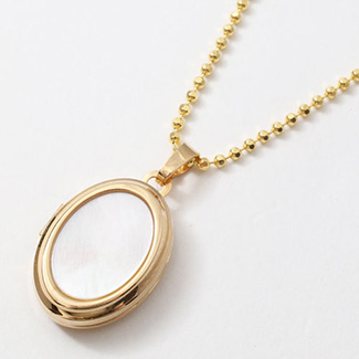 シンプルでペンダントとしても魅力のマザーオブパール(白蝶貝)が付いた小さなオーバル・ロケットペンダント。