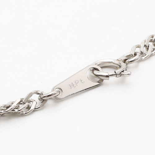 少し長めの45cm、ゆとりのあるサイズで着け心地も抜群です。プレート部分には、「Pt999(刻印)」が有り、素材と品質の良さも証明されています。