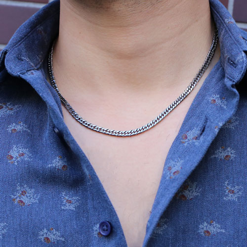 高純度素材である、純チタン(TITANIUM)チタンはアルミニウムと同程度に軽く丈夫でさびにくく金属アレルギーをほとんど起こすことがなく紫外線に当たると表面に活性酸素ができて細菌を死滅させてしまう効果があると言われています。上品で飽きのこない6面カットダブル喜平。5mm幅で存在感がある、男女を問わず楽しんでいただける洗練されたデザインです。60cmの少し長めのサイズで、体格の良い男性の方にもお使いいただける男女兼用仕様です。なめらかに肌に沿うネックレスは、着け心地も抜群!! 「カラダにやさしい!!」これだけのボリュームがあるのに、着けているのを感じさせないほど軽いのがうれしいです。