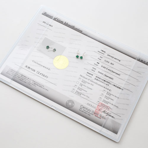 プラチナ ピアス エメラルド 合計0.8カラット Pt900 鑑別書付 3012-PG16
