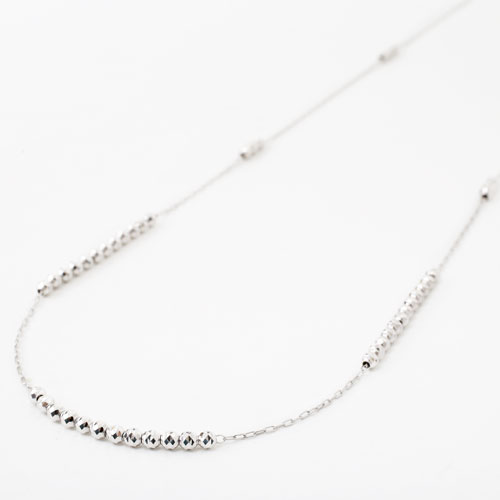 高級素材である、プラチナ(Pt850)を惜しみなく使用した、きらきらミラーボールを使ったステーションネックレス。