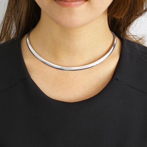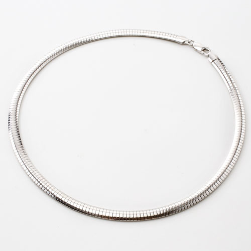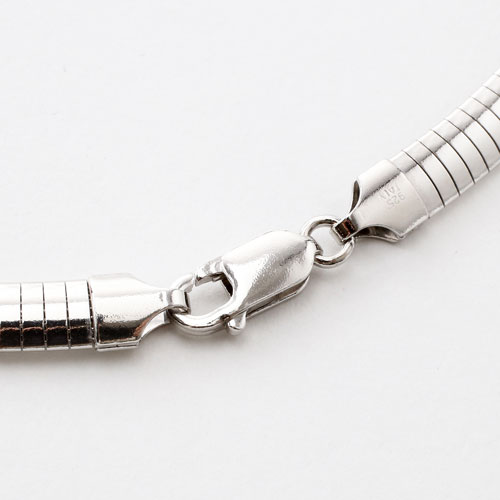 高級素材・SV925をたっぷりと贅沢に使用した、ゴージャスなイタリア製オメガネックレス。首を長く美しく見せるボリューム感を持たせた40cmタイプです。チェーンの最大幅は大迫力の約6mm。この幅のオメガはなかなか国内では見つけることが困難です。ボリュームがあるのに軽い着け心地を可能にしました。最近何かと話題のあの方(トップレディー)もご愛用のデザインです。