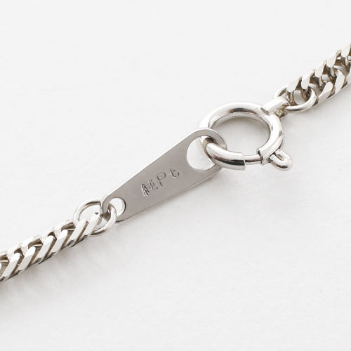 上下2面と斜めに4面カットを施しダブル(通常より細かく)で編み上げました。通常の2面カットに比べ圧倒的にカット面が多いため、光の反射面も多くなり輝きが断然違います。純プラチナを14gも使い、純Ptだけで組み上げたチェーンは大変買い得です。ただし、在庫限りの限定特別価格の為、次回入荷分より価格は上げさせていただきます。フォーマルの席はもちろん、シンプルで使いやすいデザインは普段のおしゃれにも最適!ひとつ持っていればとても安心。特別な時のために揃えておきたいジュエリーです。当店の商品は、全て、ひとつひとつ厳しい検品、チェックを通過していますので、どうぞご安心ください。男性の方にも抵抗なく着けてもらえるデザインのキヘイチェーン。ペアーで持たれてもおしゃれです。