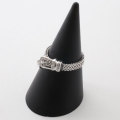 プラチナを使用した、おしゃれで洗練されたヨーロピアンベルトのフリーサイズリング。バックル部分にシリコンゴムをセットしていますので、瞬時にサイズ25まで調整可能です。どの指にも対応OK。プレゼントにもお勧めです。