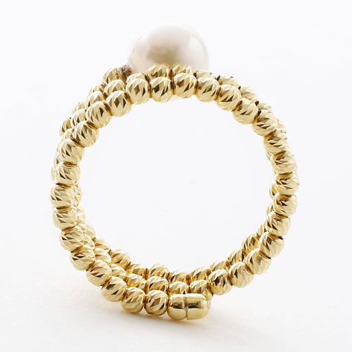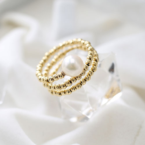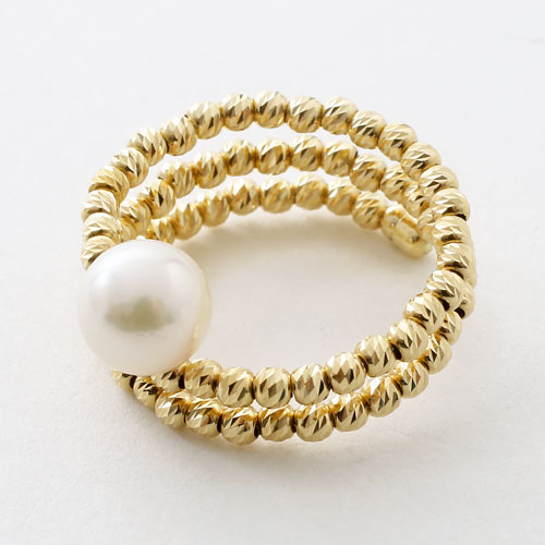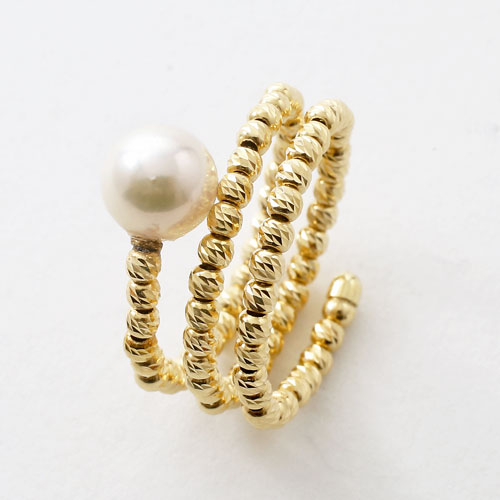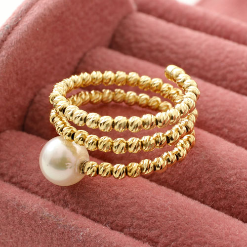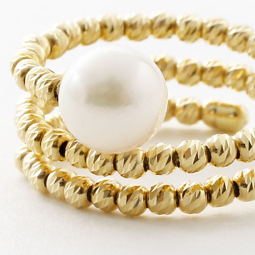 18金を使用した、おしゃれで洗練されたあこやパールのフリーサイズリング。地金部分には人気の18金ミラーボールを使用しており、キラキラ感満載のおしゃれリングです。サイズ#6から#12までなら、どの指にも対応OK。サイズを知らない方へのプレゼントにもお勧めです。熟練職人が繊細なカットを施したボールを組み上げ、なめらかでキュートなリングに。別にピンクゴールドとホワイトゴールドもご用意致しました。アレンジ次第でいろんなコーディネートが楽しめる、毎日のお洒落に大活躍すること間違いなしです。