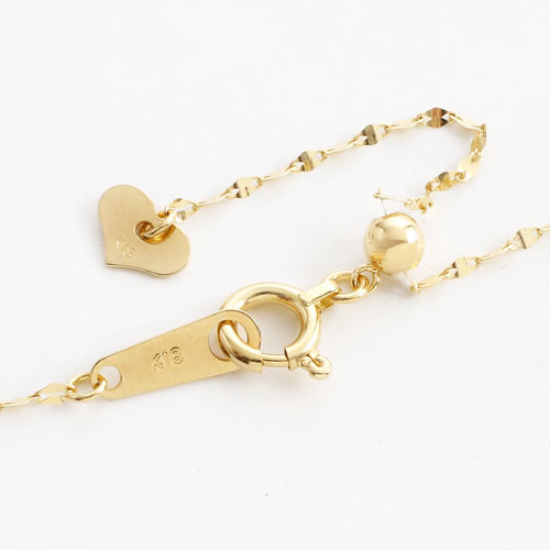 45cmまでのお好みの長さに調整できるシリコンボール付でサイズで、ペンダント用のチェーンとしても長さのアレンジが容易にでき、また、そのままでも繊細ですがキラキラの存在感のある魅力的なチェーンです。 また、プレート部分には、「K18(刻印)」が有り、素材と品質の良さも証明されています。