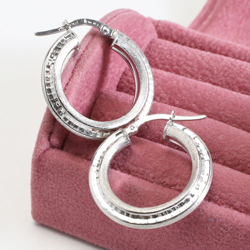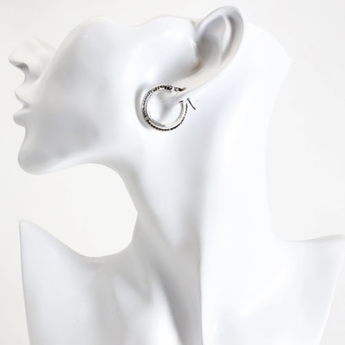高級素材・18金をたっぷりと贅沢に使用した、ゴージャスなイタリア製中空(ホロー)ホワイトカラースターダストピアス。直径約22mmの大きさで、約3.8mm幅のセンター部分のスターダスト仕上げがひと際、細かいダイヤのような魅力的な輝きを放っています。 また、イタリアの最先端ホロー技術と相俟って、ボリュームがあるのに軽い着け心地を可能にしました。どんな服装にも合わせやすく、カジュアルはもちろん、オフィススタイルやフォーマルなスタイルに合わせて頂いても素敵です!留具部分には、「750, ITALY」と製造工場番号が刻印されており、イタリア製ならではのこだわりを感じます。
