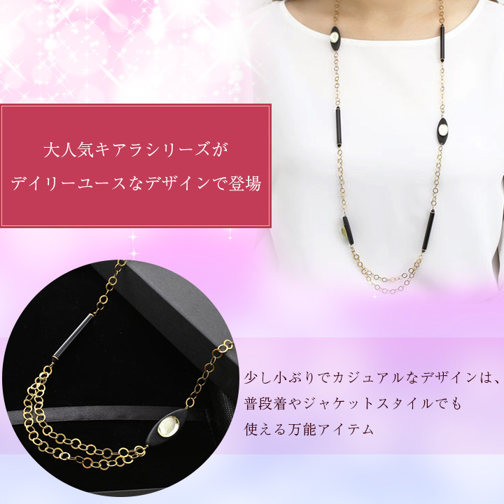 イタリアで700年もの歴史ある伝統技法で作り、守られてきたベネチアンガラス。中心地の喧騒から離れ、ひっそりと佇むアドリア海の島で、こだわりを持った職人達がひとつひとつ手作業で製作しており、イタリア人ならではの研ぎ澄まされたデザイン力と繊細なディティールは、世界に1つだけの輝きを放つガラス製品を生み出しています。そのベネチアンガラスを用いて、イタリア・ヴェネツィアで人気の若手ジュエリー&アクセサリーデザイナー・CHIARA(キアラ)が現代風にデザインしたネックレス。既製品にはない、ハンドメイドの良さが表現されたアクセサリーは、ファッションに合わせて取り入れることでさらにオシャレを楽しむことができます。上品な佇まいは年齢やシーンを選ばず女性らしいエレガントな装いをお楽しみ頂けます♪