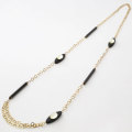 特徴的なブラックのパーツとゴールドのチェーンが高級感を演出。どんなコーデにも合わせすいデザイン。