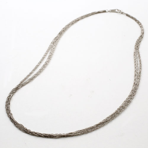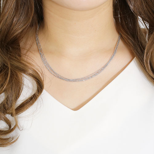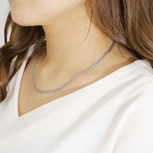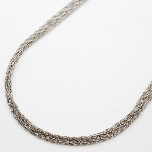 しなやかさと控えめな輝きのスクリューチェーンを5本束ねてネックレスにしました。1本だけでもキラキラと輝くチェーンを5本まとめたことにより、それぞれがランダムに面を作り、まるで光のシャワーのようなキラキラ感を演出してくれます。 最高級素材・Pt999のみで作っており、プラチナ独特の高貴で落ち着いた色合いはいつまでも飽きずにお使いいただけます。