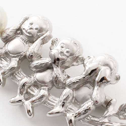 三猿ブローチチェーンを通せばペンダントにもなるスターリングシルバー(SV925)縁起物の三猿デザインはシンプルな服装や普段着のワンポイントとして活躍すること間違いなしです。さらに高級感溢れる9mmパールがオシャレを演出。プレゼントにもお勧めです。