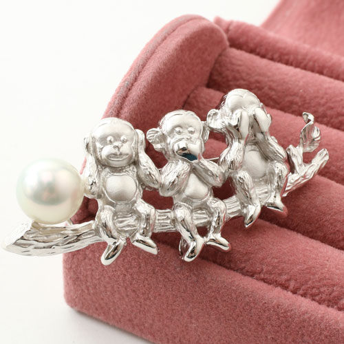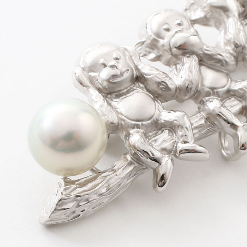 プレゼント シルバー ブローチ兼用ペンダント あこや真珠 縁起物 (三猿) 3493-FS17