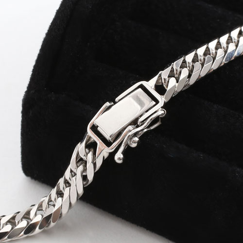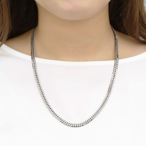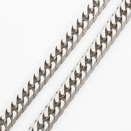 ダブル6面カットを施したキヘイチェーン上下2面と斜めに4面カットを施しダブル(通常より細かく)で編み上げました。通常の2面カットに比べ圧倒的にカット面が多いため、光の反射面も多くなり輝きが断然違います。プラチナ850を50gも使い、これだけ手の込んだチェーンは大変買い得です。フォーマルの席はもちろん、シンプルで使いやすいデザインは普段のおしゃれにも最適!ひとつ持っていればとても安心。特別な時のために揃えておきたいジュエリーです☆