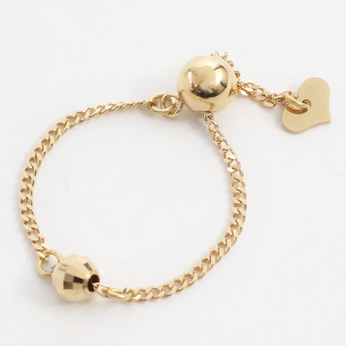 18金イエローカラーのおしゃれで洗練されたワンダーカットボールチェーンのシリコンスライド・フリーサイズリング。ボール部分にシリコンゴムをセットしていますので、瞬時にサイズ9から21まで調整可能です。その日の気分でどの指にも対応OK。プレゼントにもお勧めです。