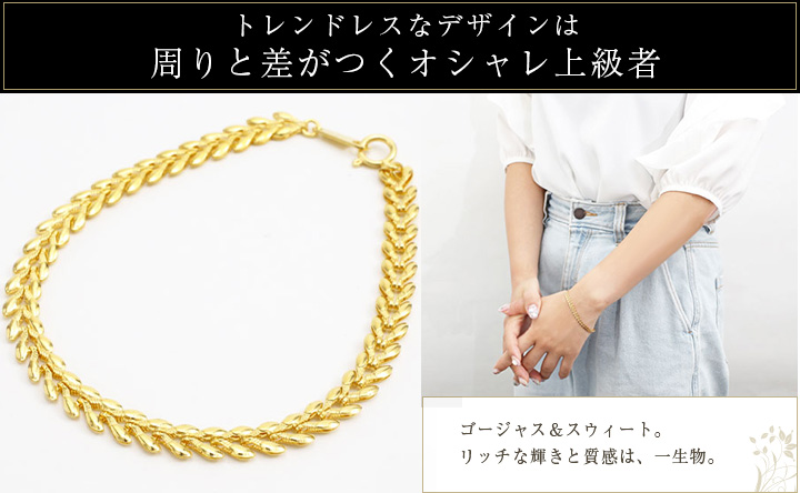高価な純金をたっぷりと使用し、熟練職人が一つ一つ手作業で組上げた高品質ブレスレットが、