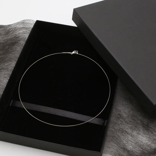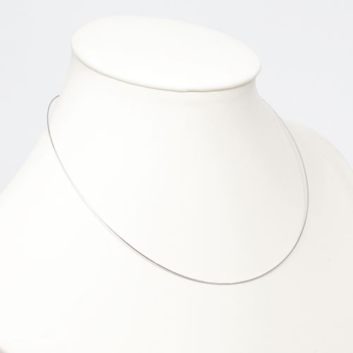 高級素材・プラチナを贅沢に使用した、シンプルで細く繊細なスライド式のオメガタイプネックレス。しかも、高い技術力が必要な日本の工場の技で芯の部分に形状記憶のチタン素材を入れています。これだけ細いのにしっかりと形状を維持します。日本で「作れる工場も限られており、なかなか見つけることのできない逸品です。