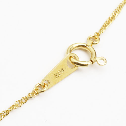 - 【ご注意】純金製品は18金に比べ純度が高く素材の価値がありますが、反面柔らかく、取扱いには十分ご注意ください。無理に引っ張ったり、重いものを載せたりせず、なるべくペンダント用のチェーンとしてはお使いにならないようにしてください。