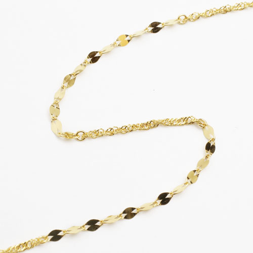 定番の人気デザインのスクリューとペダルチェーン。そのチェーンを交互に配したコラボレーション新デザインです。ペダルの煌きとスクリューのマットシャインの不思議なハーモニー。決して太くなく繊細なのに、存在感抜群のおしゃれアイテムです。純金独特の18金とは一味違った、深いゴールドカラーがさらに魅力をアップしています。落ち着いた純プラチナもご用意しましたのでお好みのカラーをお選びください。揺れて輝く宝石箱を胸元にお楽しみください。デザイン的にも服装を選ばずコーディネートもしやすく普段の装いをぐっとエレガントに引き立ててくれます。長さも首に多少のゆとりを持った42cmでプレート部分には「K24」の刻印が入っています。