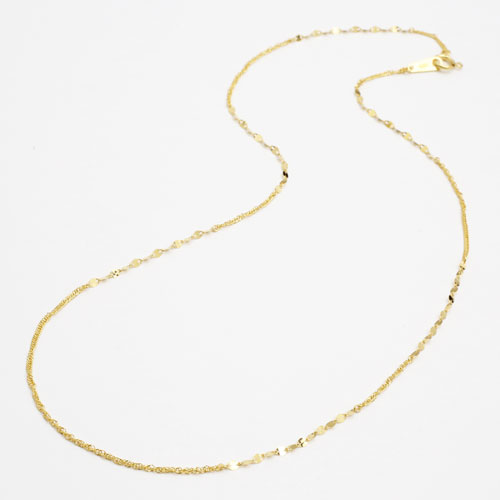 こちらのお店のネックレスを見ていた時、丁度セールになっていて細い18金ネックレスが欲しいかったのと、スライドチェーンで便利そうなので購入しました。小さいトップにピッタリでとても綺麗で長さ調節も出来てとても満足です。