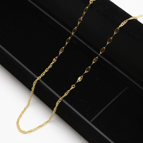 デザイン的にも服装を選ばずコーディネートもしやすく普段の装いをぐっとエレガントに引き立ててくれます。長さも首に多少のゆとりを持った42cmでプレート部分には「K24」の刻印が入っています。