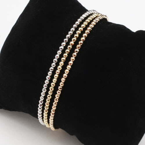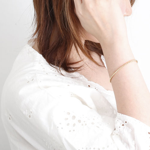 お手持ちのウォッチや石の付いたブレスなどとの重ね着けにもお勧めで、18金ならではの色合いがより魅力的ななコーディネートを演出します。