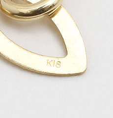 素材と品質の証明留具部分には素材と品質の証明である「K18」の刻印が施されており安心です。 |
