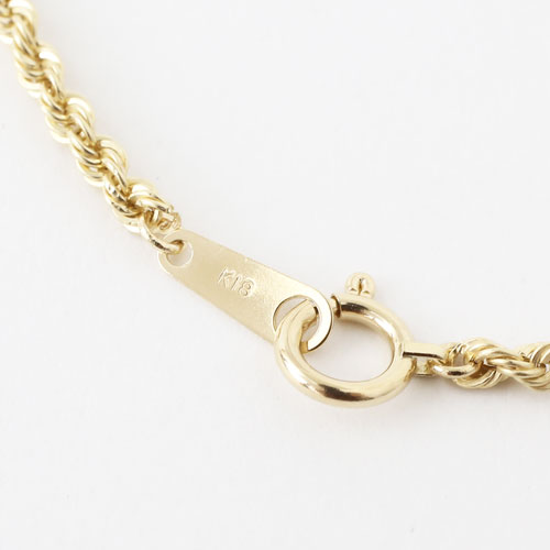 18cmの標準サイズのパイプロープは、軽いので手首の着け心地も抜群です。プレート部分には、「K18(刻印)」が有り、素材と品質の良さも証明されています。