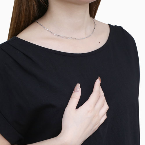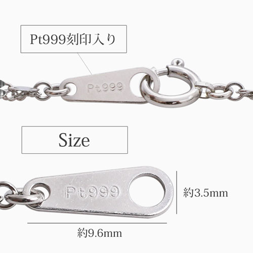 お持ちのペンダントなどとのコーディネートにも抵抗無くお使いいただけるデザインです。プレート部分にはPt999刻印が入っており、素材の純度が証明されています。