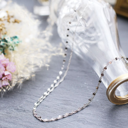 チェーンは細いので取扱注意ですが、ミラーボール部分が良く輝くので、チェーンはさり気ないくらいが丁度良いと思いました。スクリューチェーンのため、見る角度によってチラチラ光るのもとても綺麗です。
