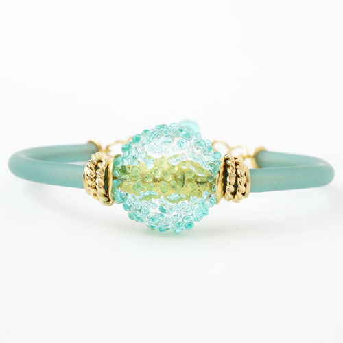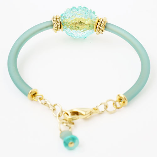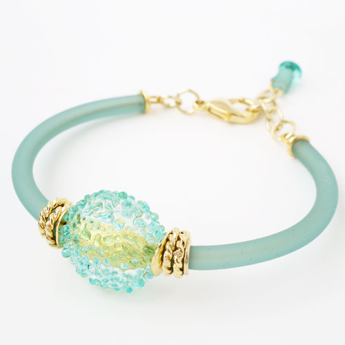 イタリア製 ベネチアンガラス ブレスレット グリーン/緑 シュガーキャンディー アジャスター付き キアラ・デザイン 3946-IN18