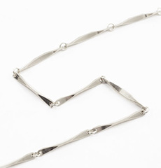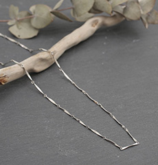 今から20~30年前に一世を風靡した切子タイプのネックレス。その仕上げをできる熟練職人の数も年々減少して今では日本で数人にまでなってしまいました。ここ数年その日本的なデザインと温かみのあるシャープさを求めて多くの方より問合せをいただいておりました。当店ではその数少ない職人の一人とコラボをして現代風にアレンジしたおしゃれな男女兼用の小波切子を使用したネックレスを販売することとなりました。どんな服装にも合わせやすく、無垢独特の満足感があり、それぞれの切子のコマに施されたカットが控えめで美しい輝きを放ちます。他とは印象の違う、華やかなネックレスとしてお使い頂けます。