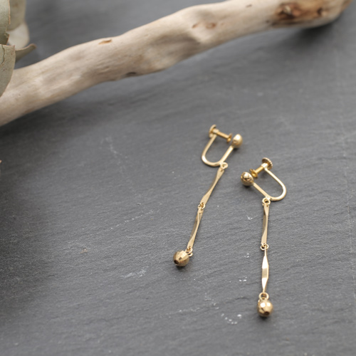 日本製 18金 K18 切子 小波 ミラーボール付き イヤリング 4080-TS19