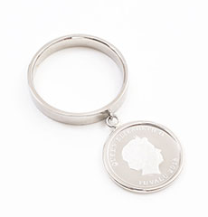 Pt900のリングをセットした珍しいコインリング。世界的に地金が高騰している昨今、